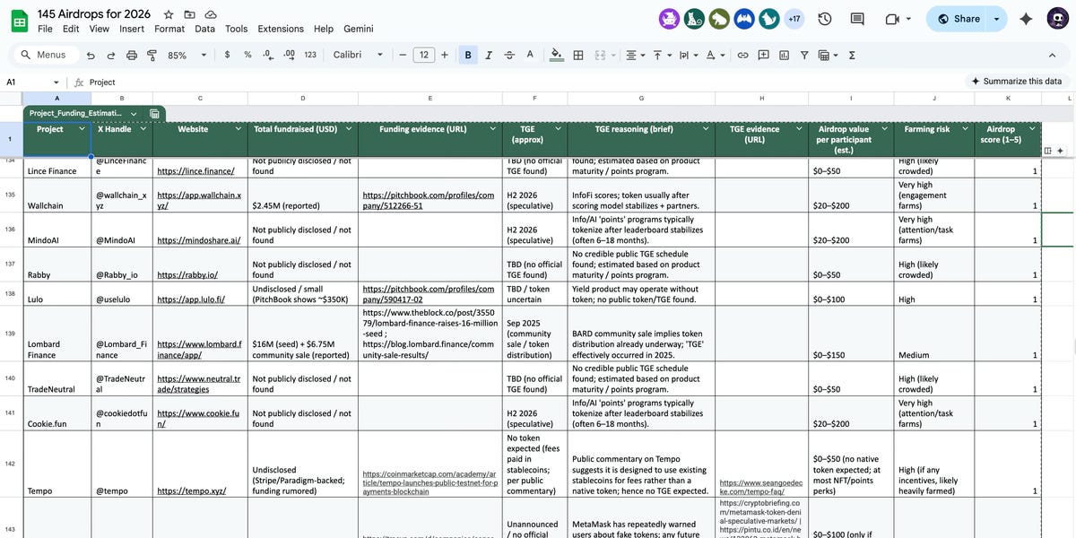 A comprehensive list of 145 projects expected to offer airdrops in 2026 is now available! ![]()