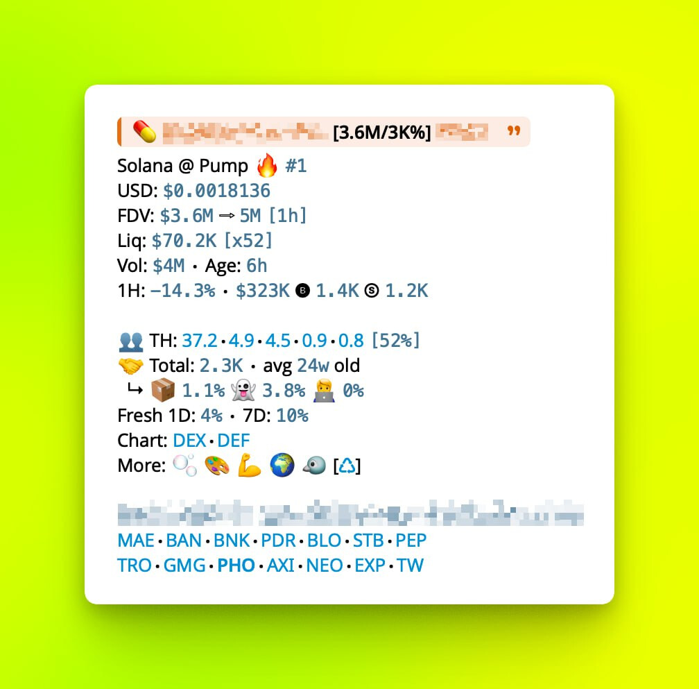 x- query a tokenz- minimal token query, no images, trimmed contract, minimal honeypot info$- query a token symbol (A-Z only)a- query CoinGecko tokensc- include a chartcc- only include the chart imagecx- minimal response with a chartds- Search and return multiple tokensf- query BTC, ETH & SOL + personal favorites
