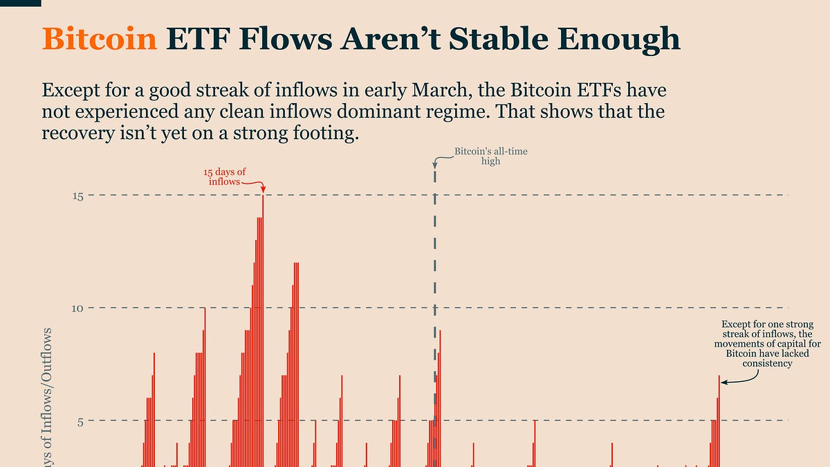 Bitcoin isn’t getting enough consistent interest right now. After it was doing really well last October, now people are unsure and don’t want to invest much. They are being careful, especially because earning from simply holding cash or safer investments is pretty good. So, until things get better with interest rates and people feel more confident to invest, Bitcoin might just stay in this unsure place for a while. ![]()