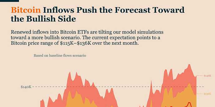 - ETF Inflows: Consistent inflows are pushing Bitcoin’s price forecast higher, with a baseline of ~$126K in 30 days.