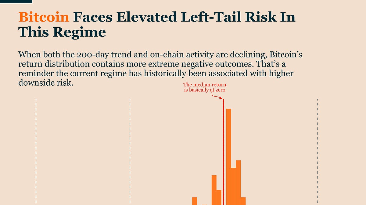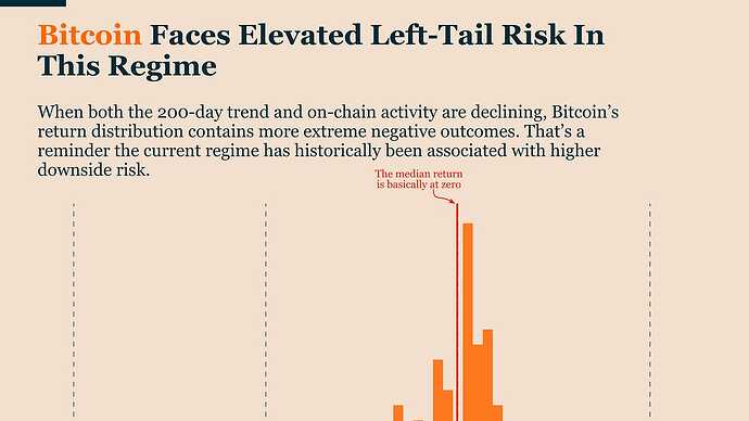 The main point is to highlight that Bitcoin is still in a high-risk regime, even though it has stabilized recently — caution is advised for investors.