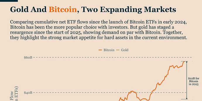 Bitcoin is not replacing gold; instead, both are rising together as demand for hard assets increases. ![]()