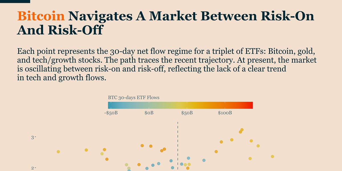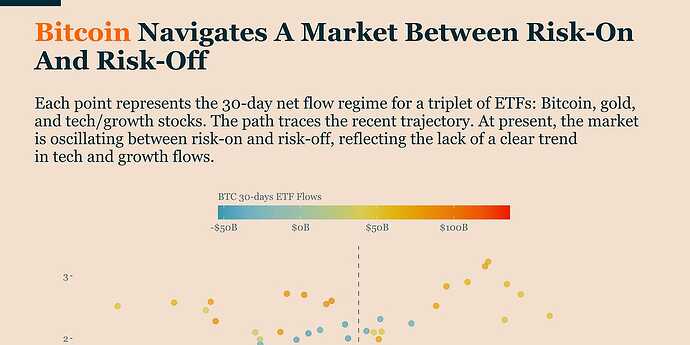 ETF flows have stabilized but remain below zero, indicating indecision in the market.