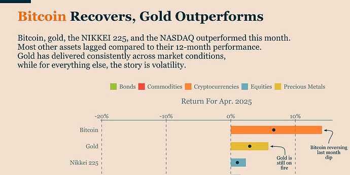 Bitcoin bounces back in April, driven by ETF inflows and market recovery, while Gold continues its steady performance.