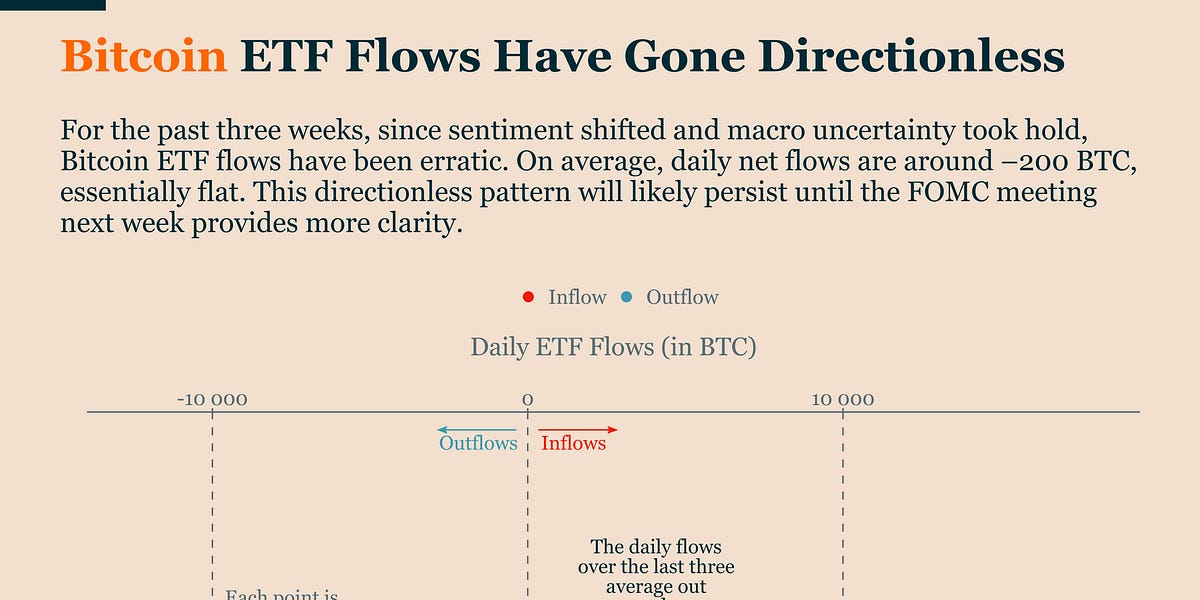 - Short-term Stagnation: Bitcoin appears stuck due to flat ETF flows and macroeconomic uncertainty.