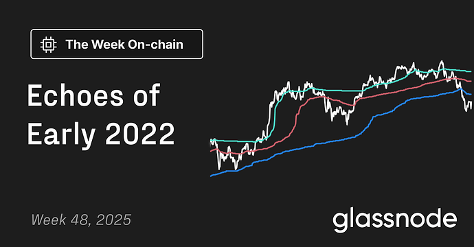 Bitcoin’s market structure is echoing early 2022, with over 25% of supply underwater and weakening demand across various sectors. ![]()