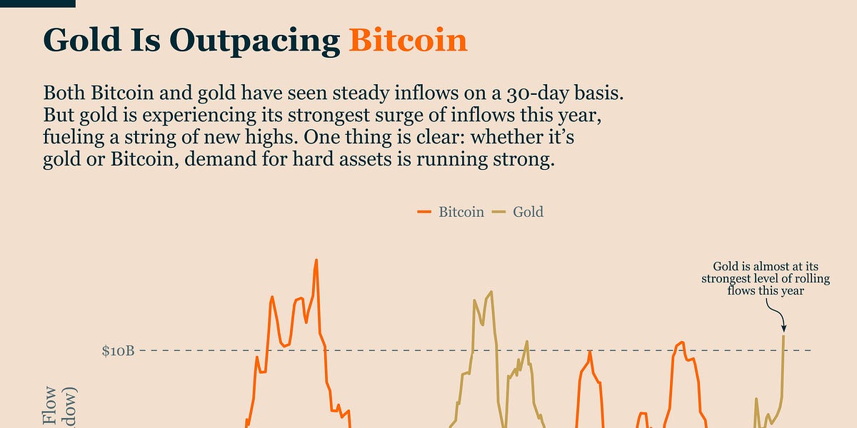 Gold’s Surge: Gold has seen stronger inflows than Bitcoin since August, indicating a defensive tilt among investors.