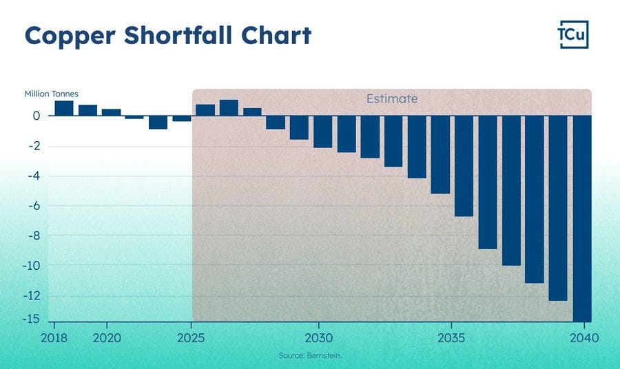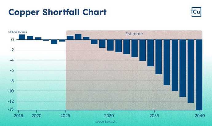 Copper is super important for things like AI computers and electric cars. Right now, there isn’t enough copper because it takes a long time to dig up new copper from the ground. Many people are starting to want more copper, but not enough companies are ready to supply it. This means that if you invest in copper now, you might make a lot of money later when everyone needs it!