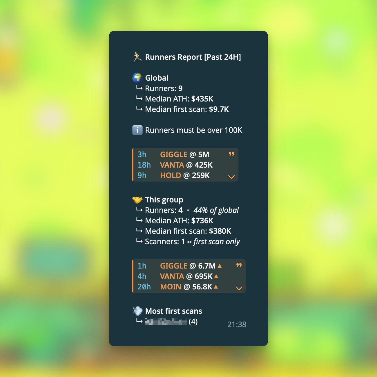 To be included, runners must meet specific criteria and currently trade above 100K FDV.